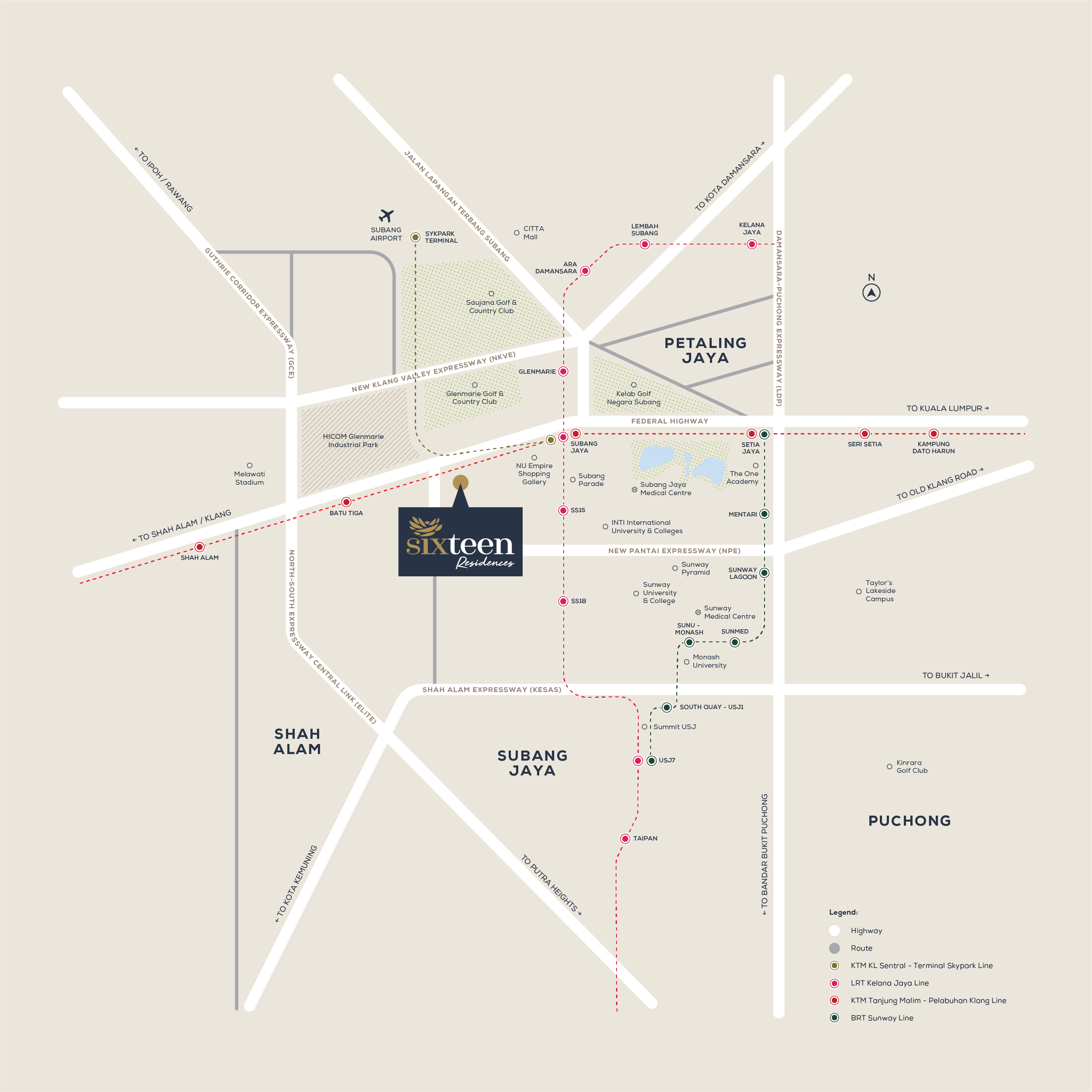 Sixteen Residences is a freehold high-rise development located in SS16, Subang Jaya, just a short walk from both LRT and KTM stations.